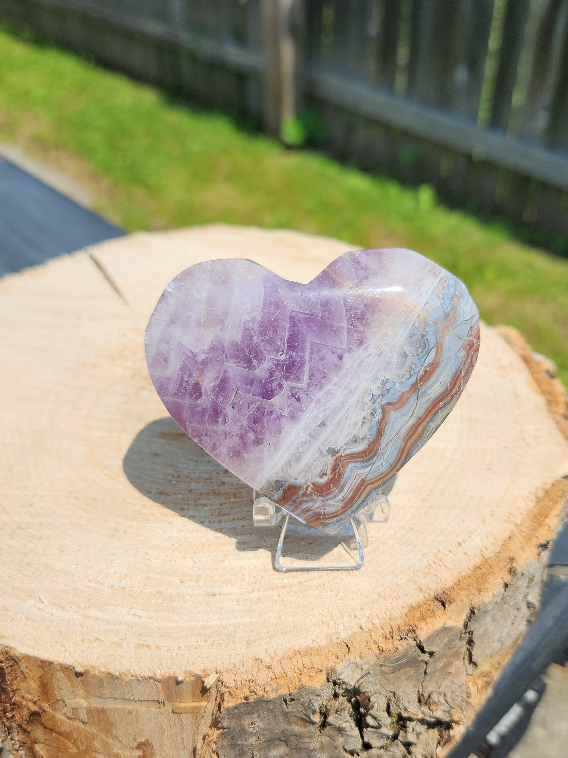 Infuse your space with uplifting, balanced energy through these stunning Crazy Lace Agate heart carvings, each featuring natural accents of Amethyst and Quartz. These unique hearts combine the swirling, colorful patterns of Crazy Lace Agate with the serene violet of Amethyst and amplifying Quartz, making every piece a one-of-a-kind treasure.