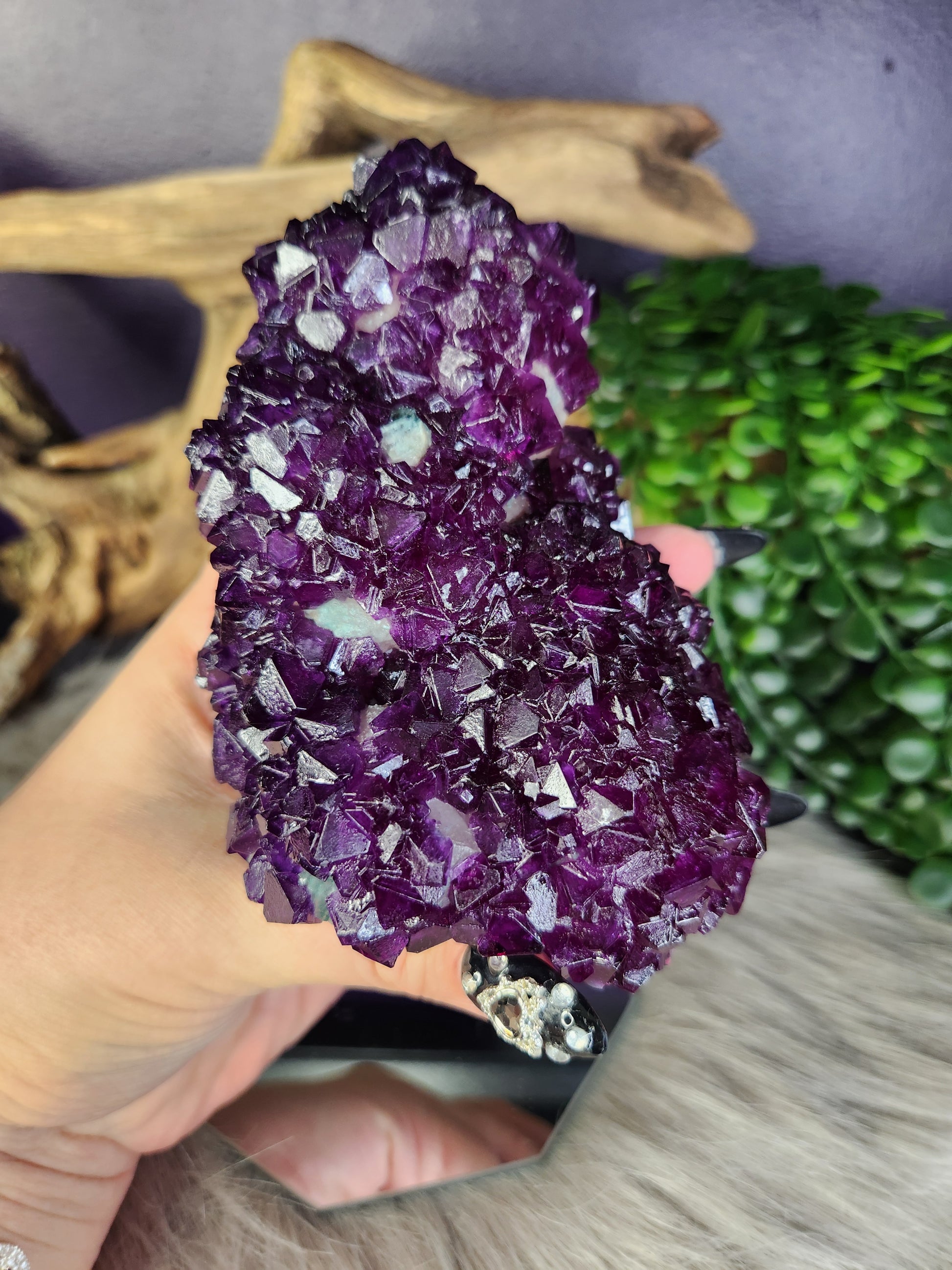 Purification: Purple Alum is known for its strong cleansing abilities, helping to clear negative energies and promote mental clarity. Paired with Stilbite’s calming influence, these crystals create a serene and harmonious environment.