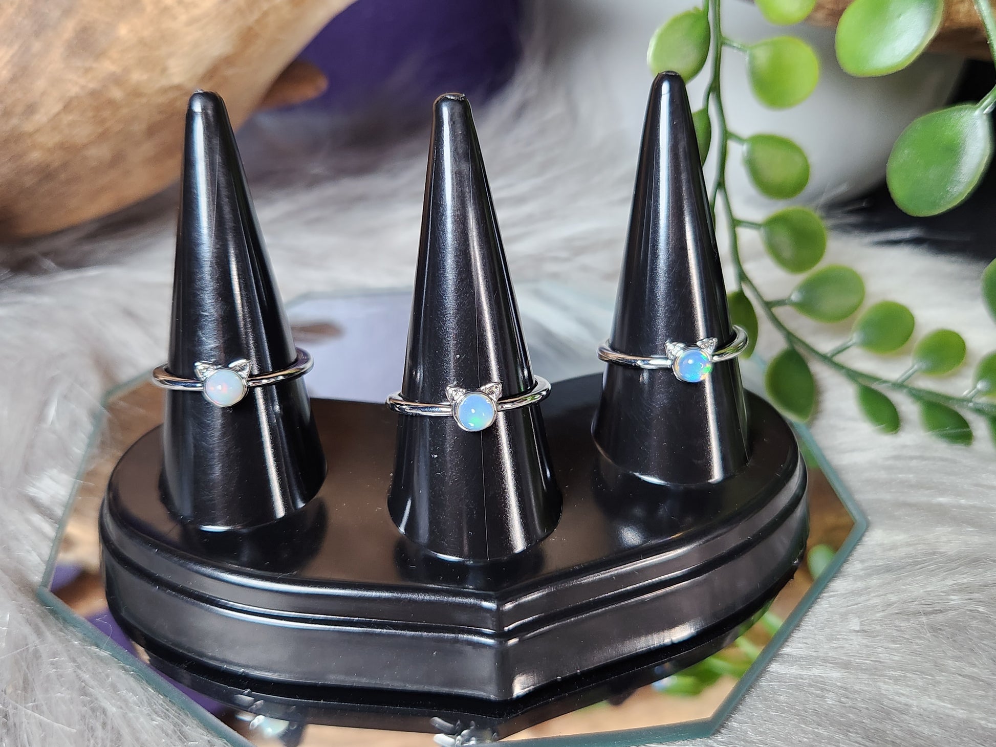 — Features a shimmering opal with playful fire and color